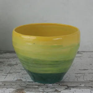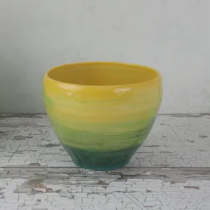 Sunshine Yellow & Emerald Green Handmade Pottery Bowl – Wheel-Thrown Stoneware